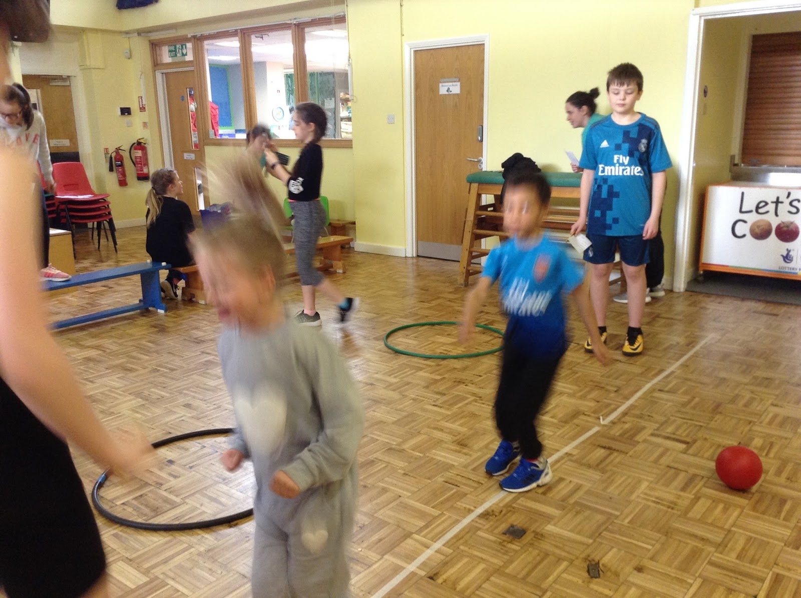 They had to complete a variety of times skills such as step ups, hoop skipping, speed jumping, and ball bouncing.