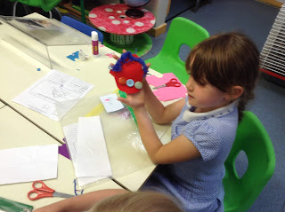 I turned the lights off, borrowed the tourches from Miss Pratchet and had a go at making our own shadows. We agreed a plastic water bottles would be rubbish to make shadows with "because the light gets through it". so we used playdough instead to see if we could change the size, the shape and the length of shadows.